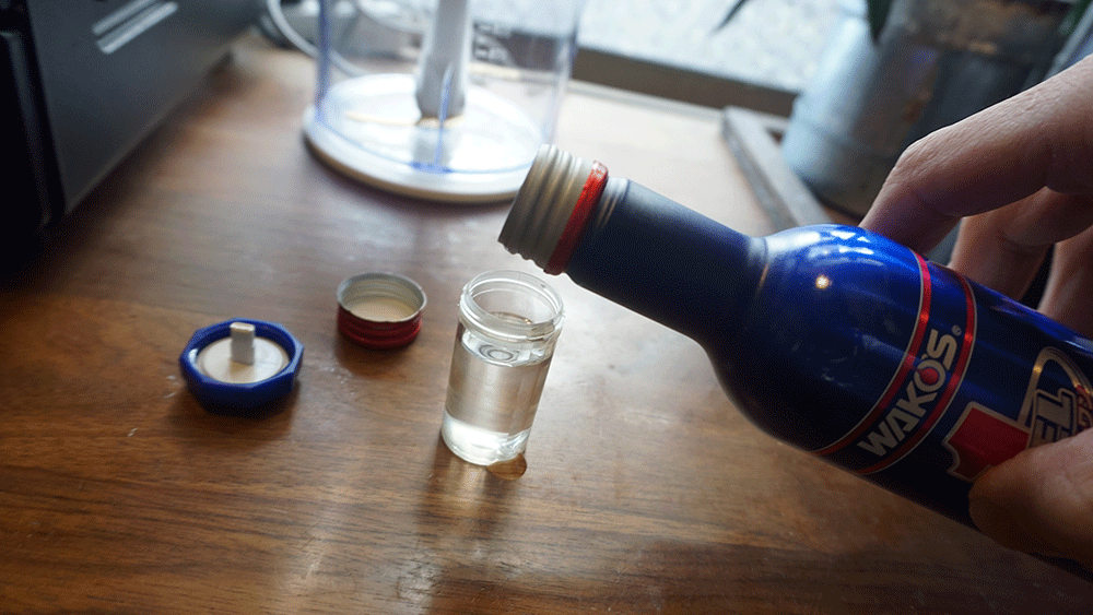 ガソリンを入れるタイミングで入れたいのですが、スタンド内でフューエルワンを取り出して計りで測って、なんてことはできないなぁ…その分量をどうやって持っていこうかと思っていて見つけた小道具、それが…