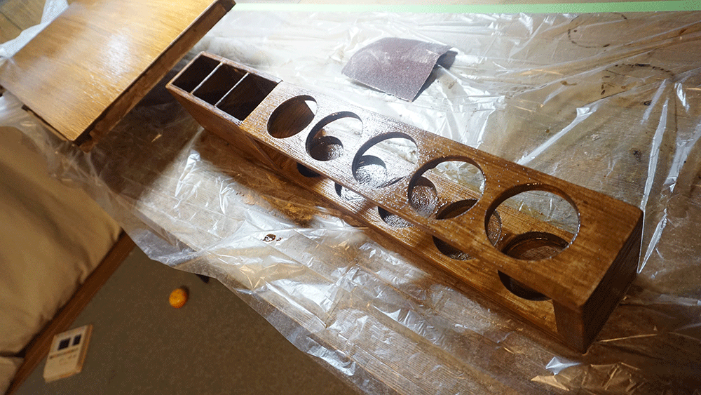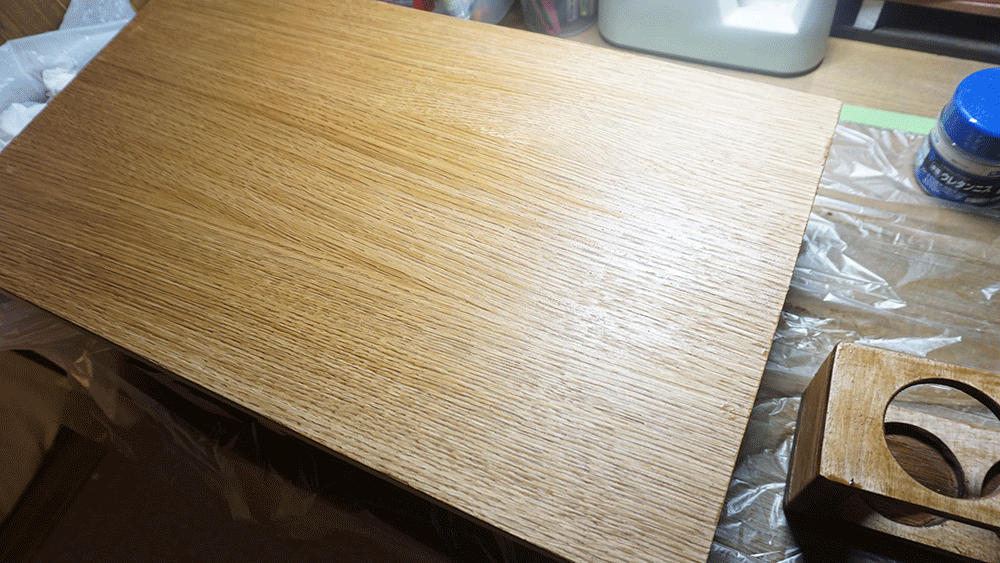 二度塗り+ウレタンニスを上塗りして乾燥させます。