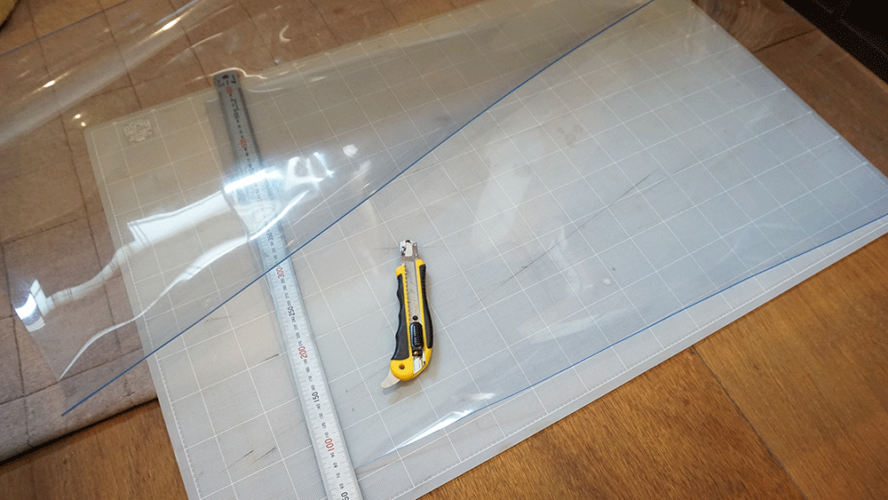 定規とカッターで簡単に切れます。