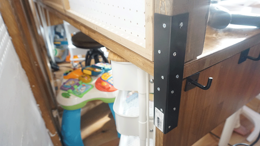 そこにセリアの棚用アングルを下から2つ、上から2つ、計4つのアングルで支えます。
