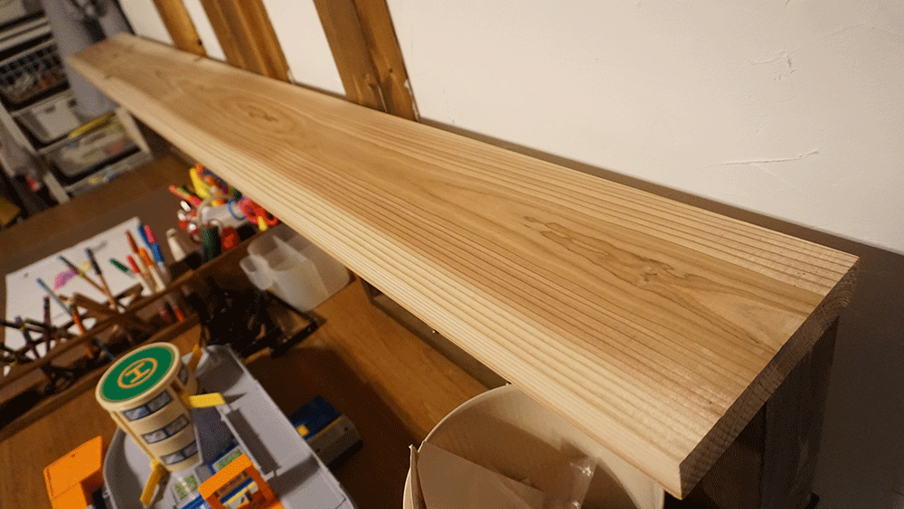 板はホームセンターで見つけた杉板、木目が綺麗なもの(好きな木目のもの)を選んで購入。