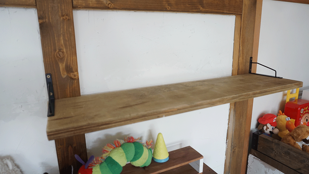 まだまだ収納が足りないので、壁枠を利用して棚板を作りたいと思います。