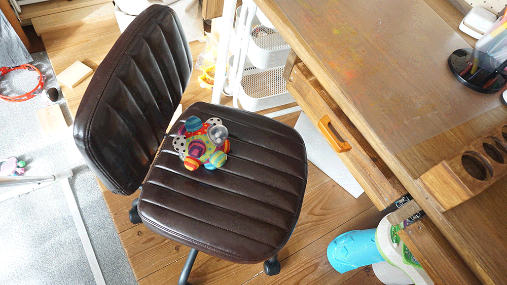 これもいろいろ見て回りましたが、値段的なこととどうせ子供用だし汚れるだろうなと思い、その条件を満たしたニトリの椅子に決定。