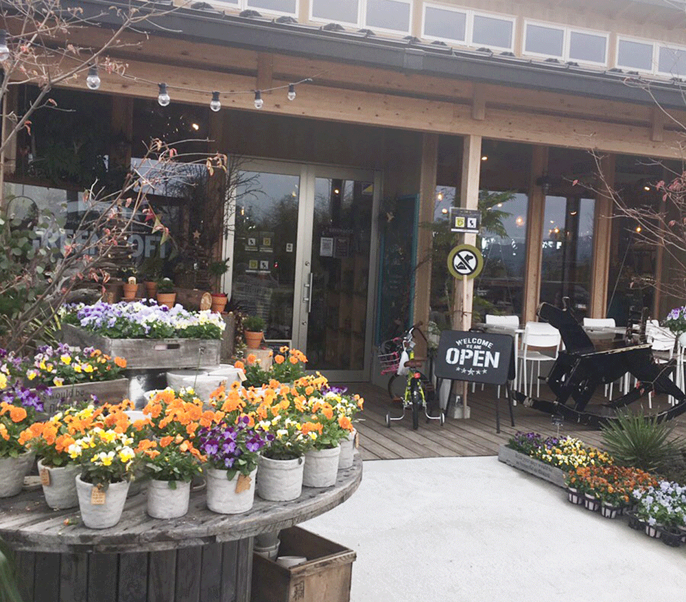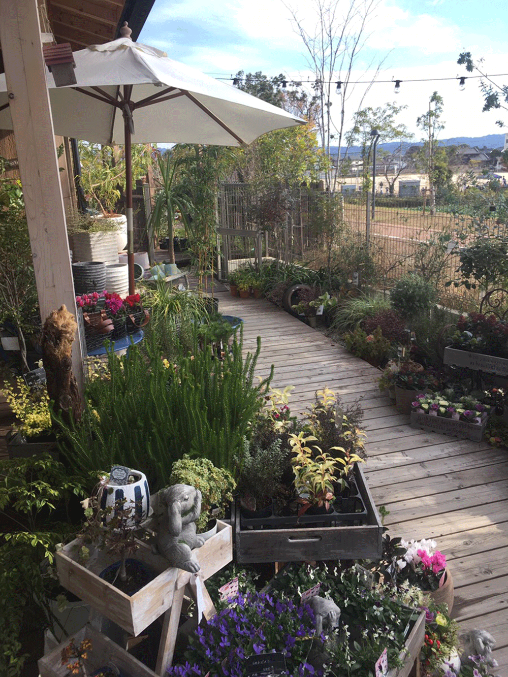 また見落としがちな屋外スペース(店舗裏)はお花や大型植物がたくさん置かれています。