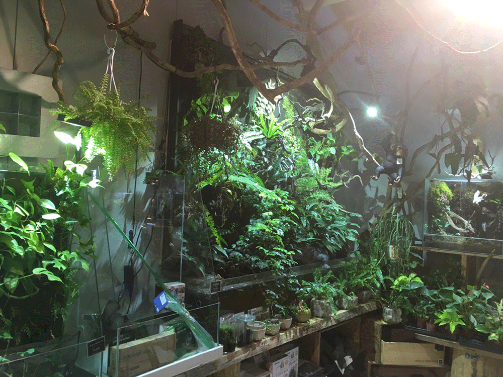 また「パルダリウム」という水槽を使用した展示もされていて、コケびっしりの箱庭を見ることもできます。かわいい。
