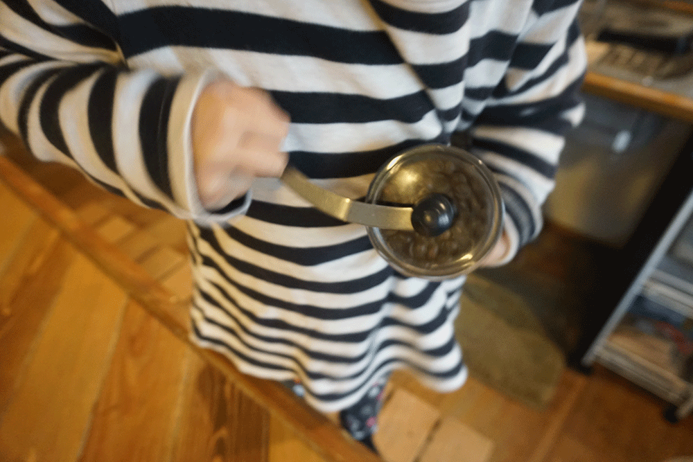 電動も以前使っていたのですが、古いものだったので細かく砕くことができず、酸味の強い好みの味にならなかったので、ちょっと大変なんですが手動で挽いています。
