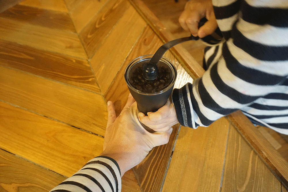すぐに「手伝ってー」と言ってくるので結局自分で挽くことになります。
