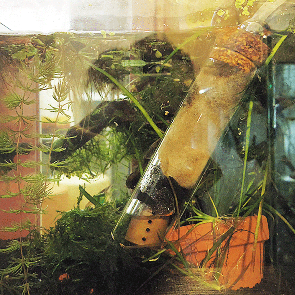 ちなみにこの投げ込み式フィルターは試験管を改造してフィルターにしています。