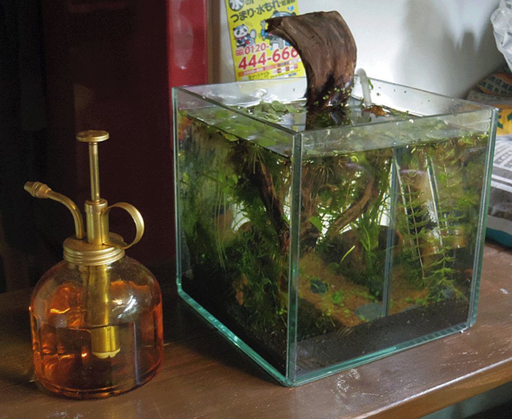30cm水槽がkuranメイン水草水槽なのですが、実は15×15×15cmの水槽も密かに置いています。