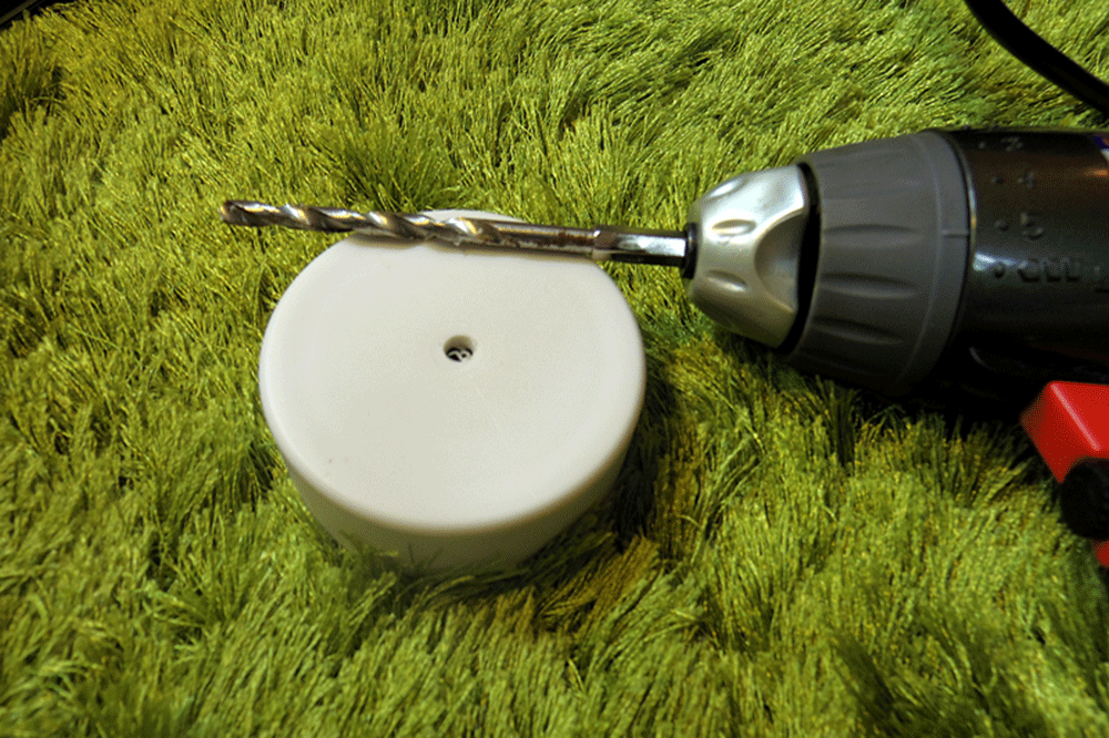 穴をあけ、プラスチックジョイントをグルーガンで接着。