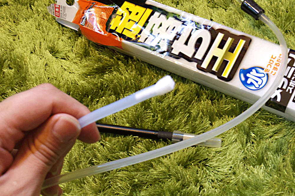 割り箸かもしれない、いや、ホースが長過ぎるのかも。