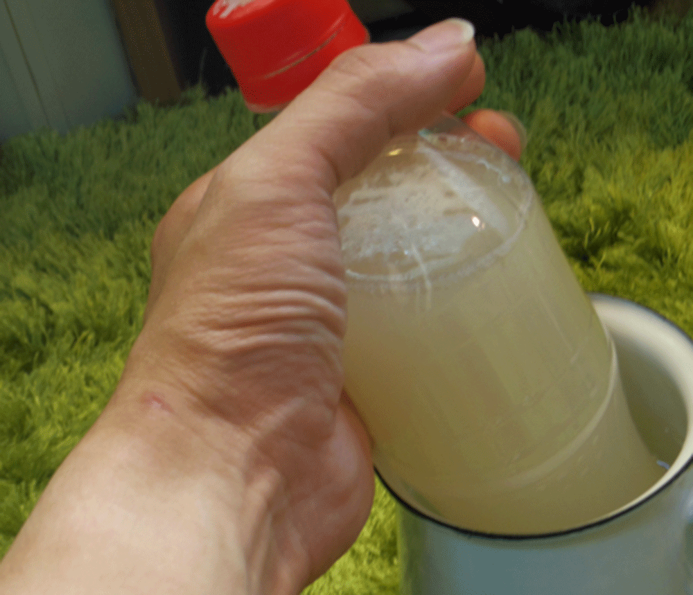 まず砂糖、塩をボトルにいれ、シェイク。