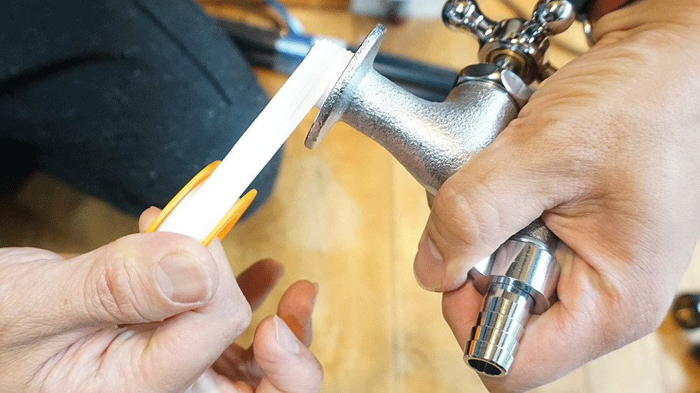 蛇口に水洗用のテープをネジ部分に巻きます。