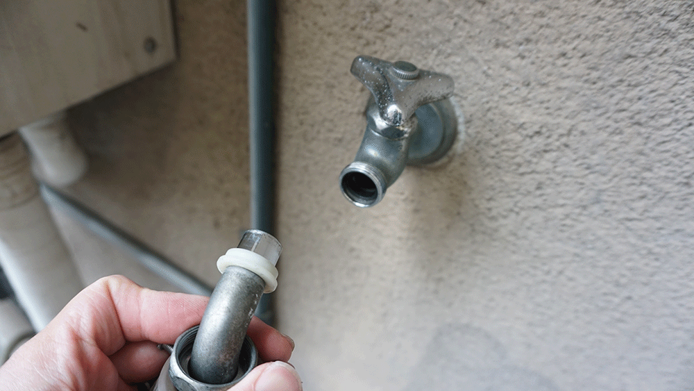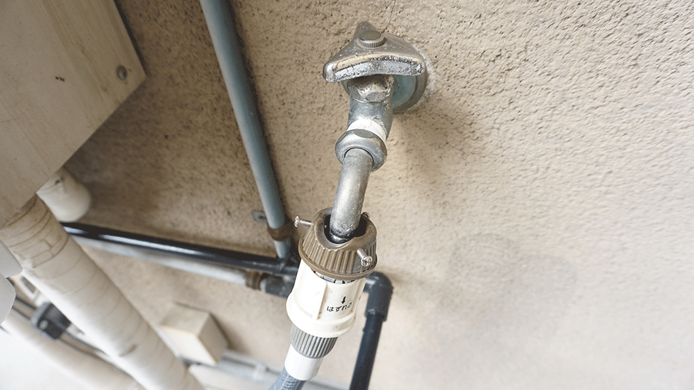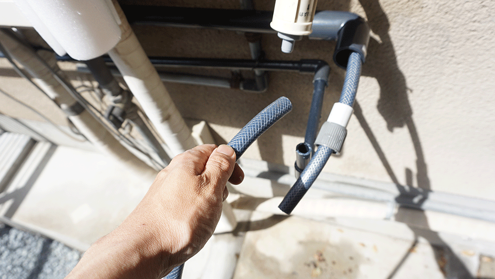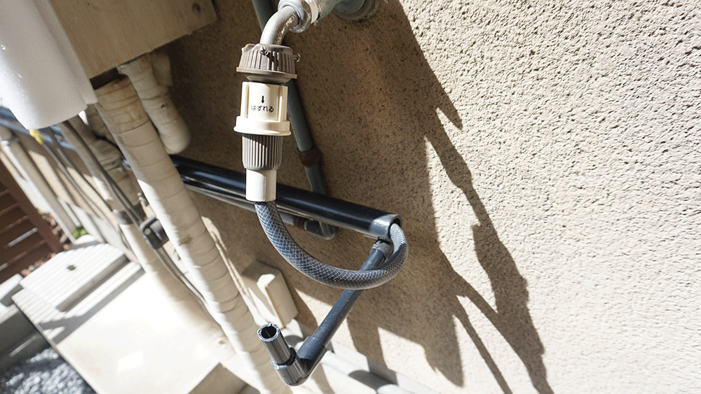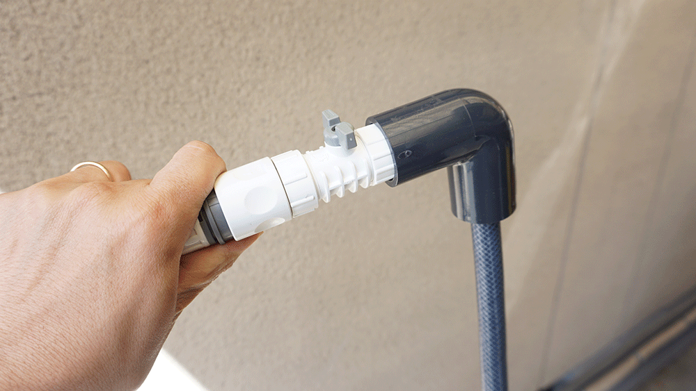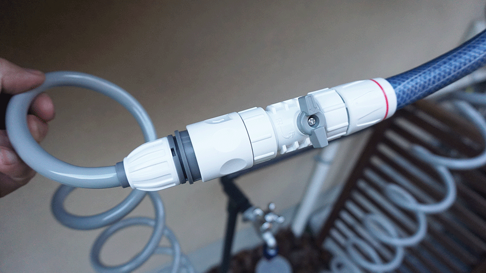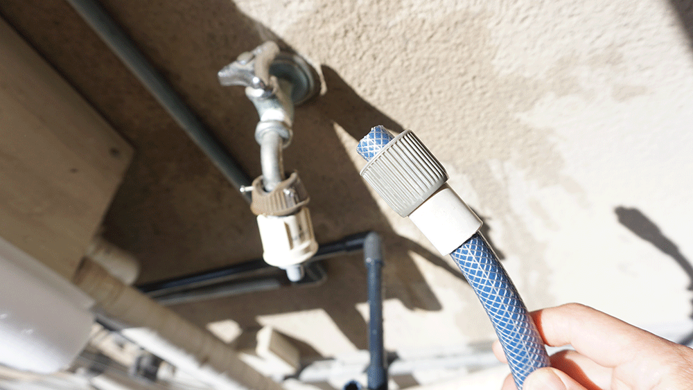 繋げたらセットして、ホースを蛇口につなげます。