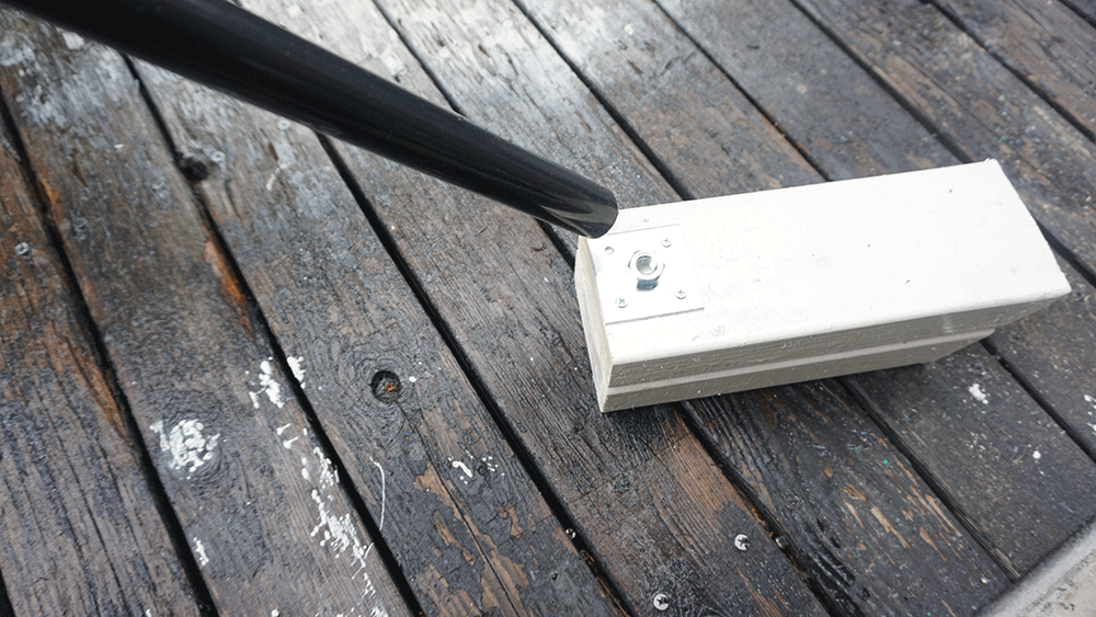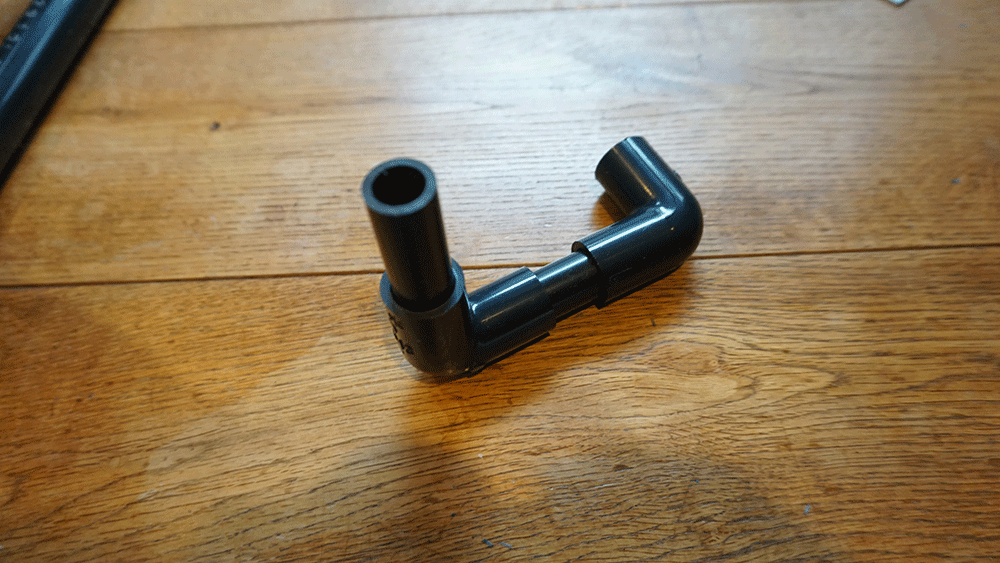 長いパイプを次に通して、ホースを通し、L字とパイプの二つを繋げます。