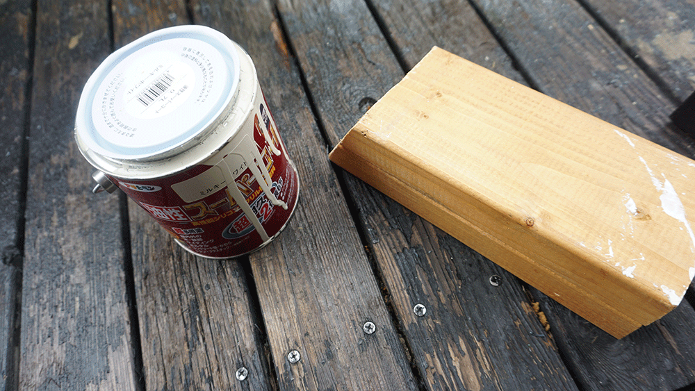 適当な木材に油性塗料を塗ります。