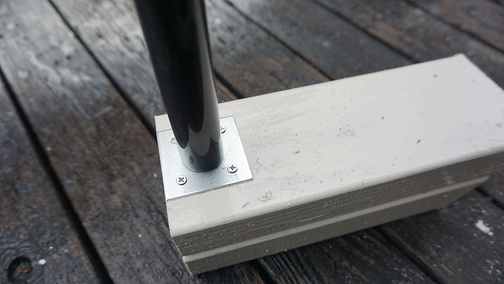 プレートに塩ビパイプを置きここにもビスで固定。