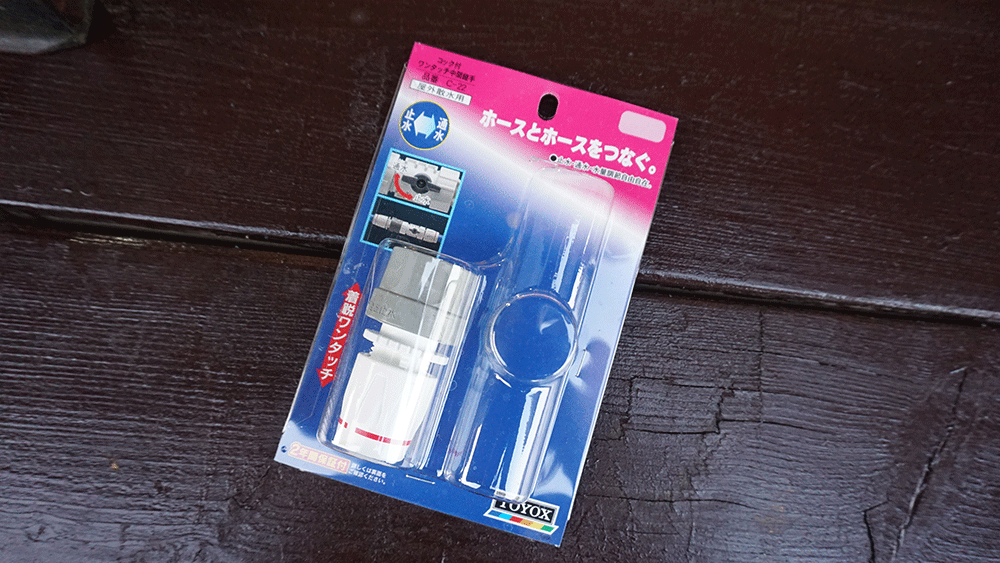 これはホース同士をつなぎ、しかもそこで止水ができるという代物。