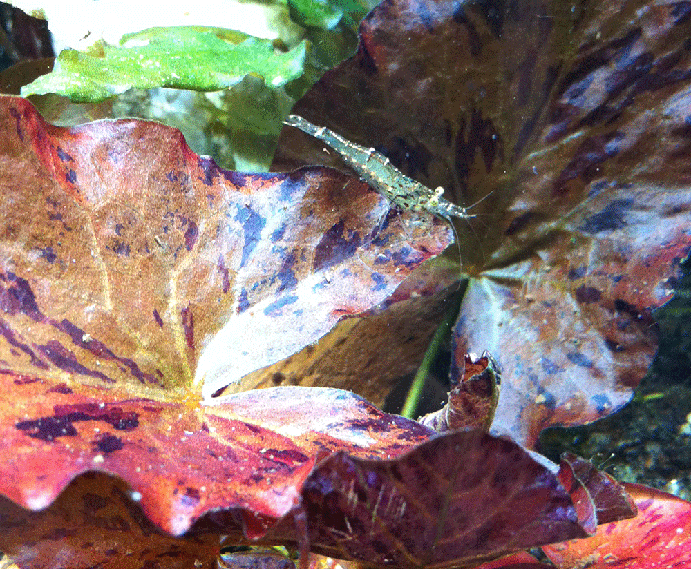 ミナミヌマエビよりも大きく、ヤマトヌマエビよりも小さい。で、透明で金粉を撒いたようなボディが美しいミゾレヌマエビ。
