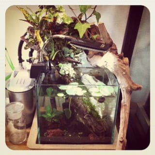 その後、外部フィルターを買い、流木を買い足し、観葉植物を植え、生体を購入し、熱帯魚の楽しさに目覚めていきます。