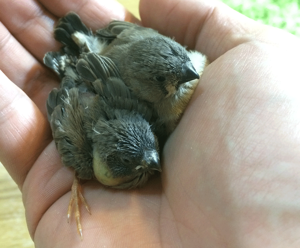 生まれた錦花鳥は二羽。孵化しなかった卵もありましたが、この二羽は無事育ってくれました。