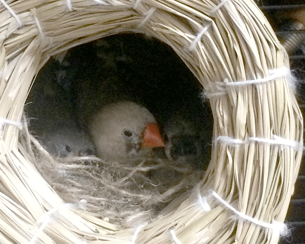 成鳥に近づいてきた証です。錦花鳥の成長はとても早く3ヶ月もすれば立派に大人の仲間入りです。ヒナ時代の可愛さはほんとに瞬く程の出来事です。ヒナの世話はとても神経を使いますし大変ですがその期間はわずかなので楽しむようにしましょう。