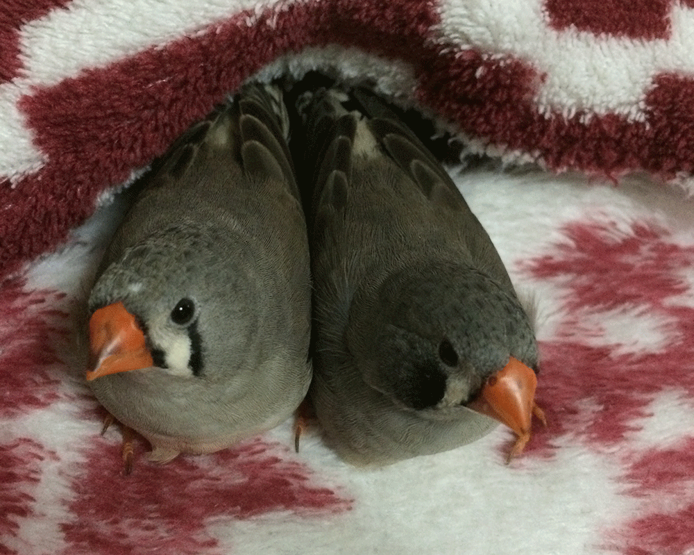 ずっと体を引っ付けて離れようとしません。手の中に抱くとすぐに寄り添って二羽でもちもちします。飛ぶことができないので食べると寝るの繰り返し。エサは1日3回ほどを目安として与えます。与える時間は生活リズムに合うように、決まった時間に与えるようにしましょう。
