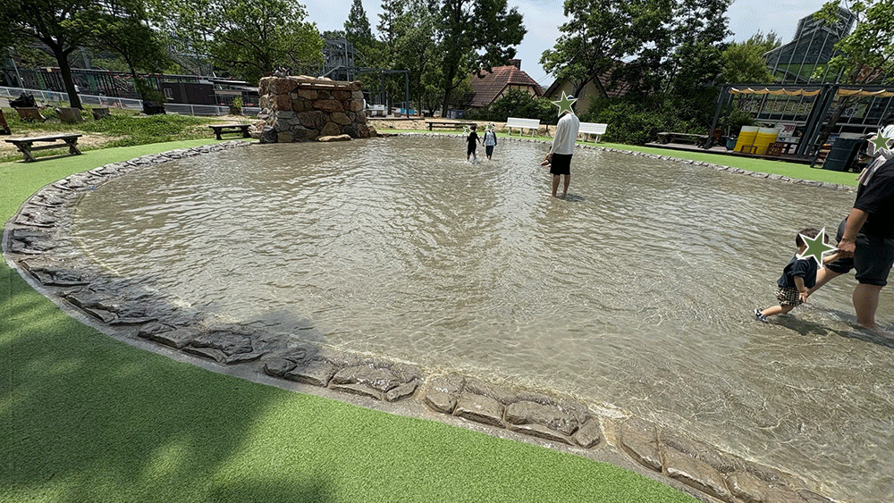 プールとはいっても、足だけのじゃぶじゃぶ池。