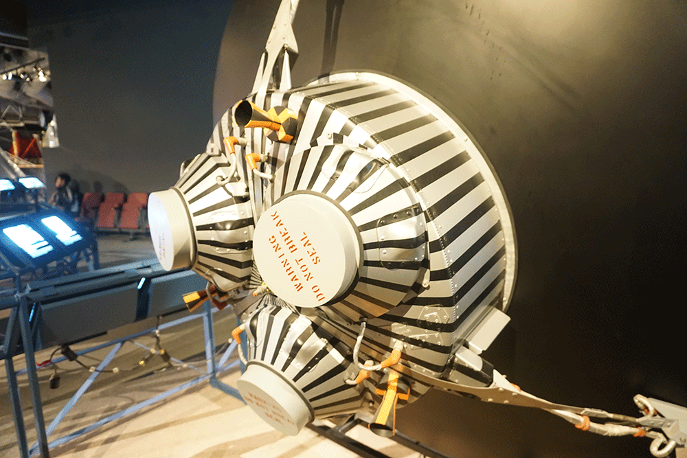 これは実際に飛行し、宇宙から帰還した本物の機体だそうです。とても宇宙に行ったとは思えない見た目の宇宙船。でもかっこいいなぁ。