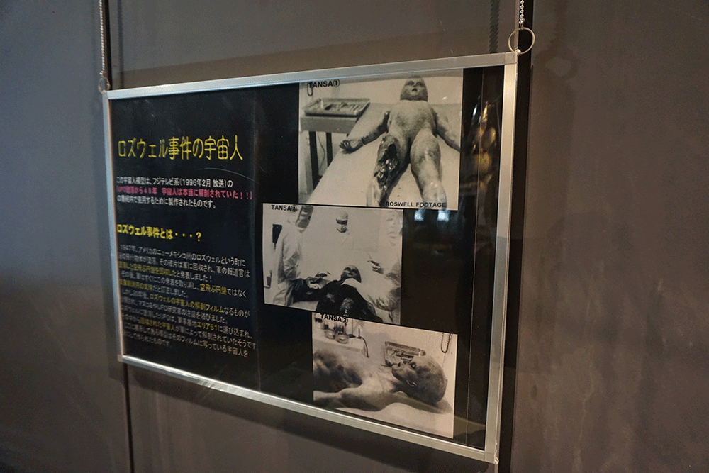 アメリカ合衆国ニューメキシコ州ロズウェル付近で墜落したUFOが米軍によって回収されたとして有名になった事件の宇宙人レプリカ。