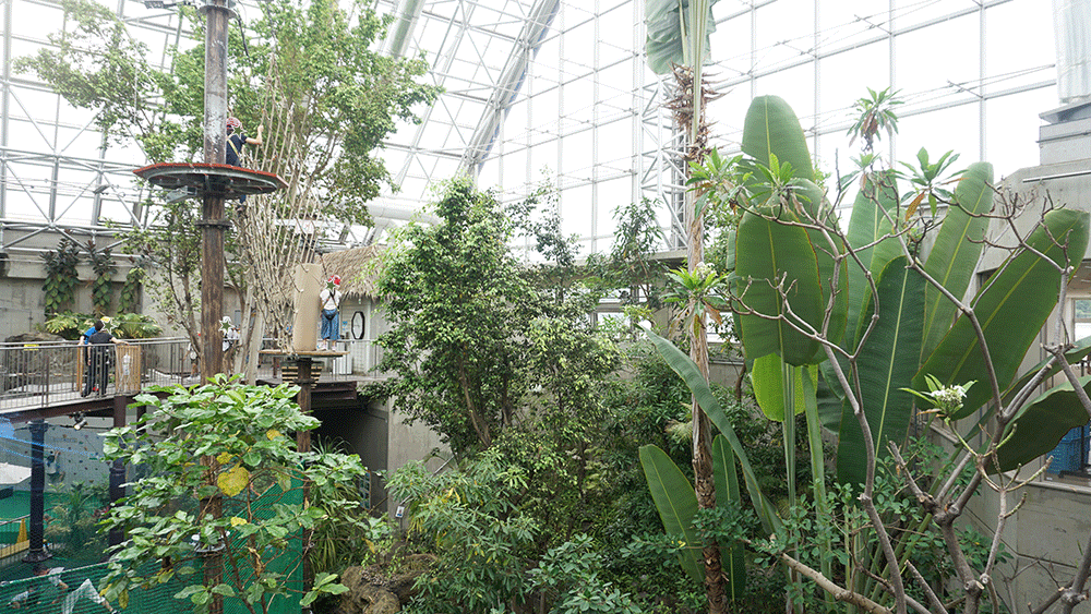 受付の横にあるスロープから室内に入るとジャングルのような空間が広がります。