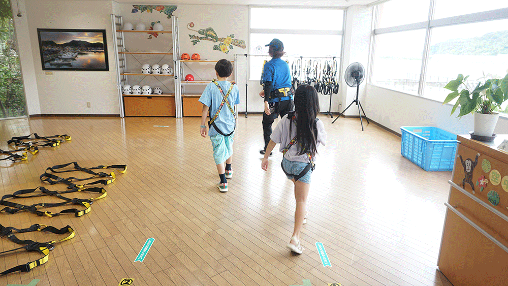 受付で料金(子供1000円)を支払い、2階の空中ウォーク受付場へ行きます。