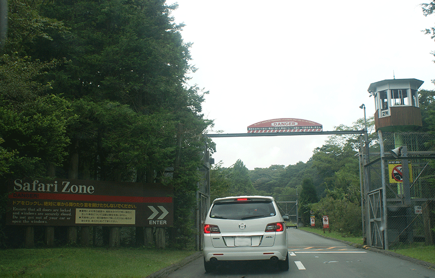 サファリパークはマイカーで入っていくというイメージが強かったので、初めてのサファリパークをマイカーで堪能することができて嬉しかったです。富士サファリパークに入ると「サファリゾーン」と「ふれあいゾーン」があり、正面のゲートを通ると、そのまま高速道路の料金所のような感覚で入場していくことができます。
