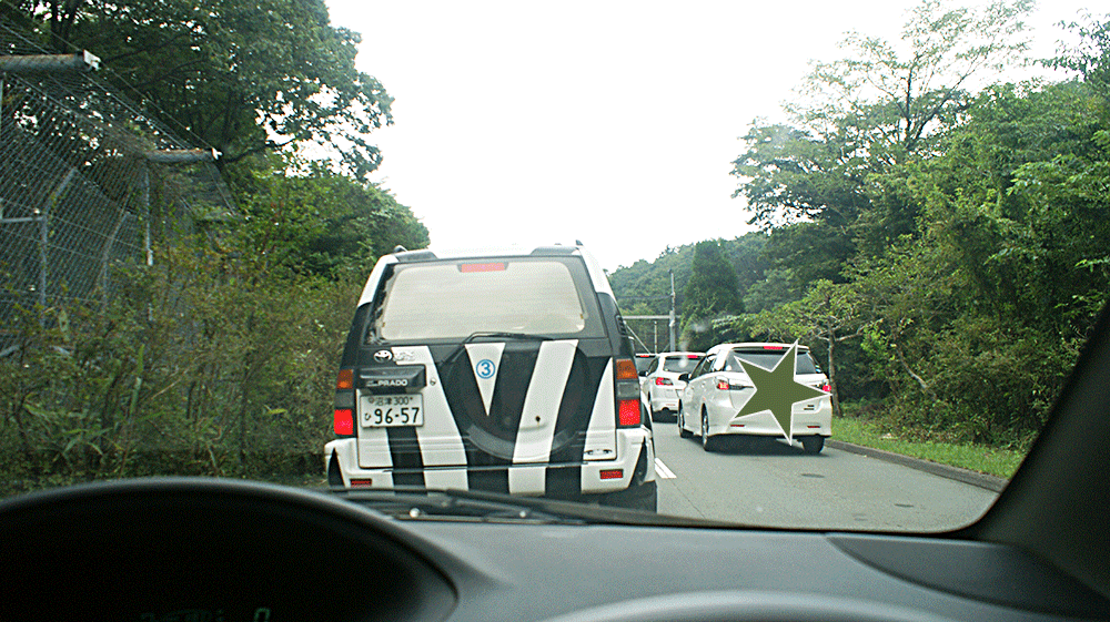 窓開けたらやばいやつです。こんな渋滞してたら逃げることもできません。