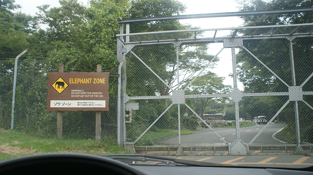ジュラシックパークの中に来たような気分になるこのゲート、毎回ワクワクしてしまいます。ゾウゾーンもなんかツボです。