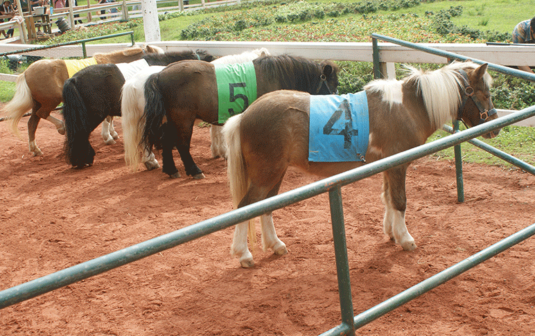賭けていたポニーが一着でゴールし、ポニーのキーホルダーをもらいました。