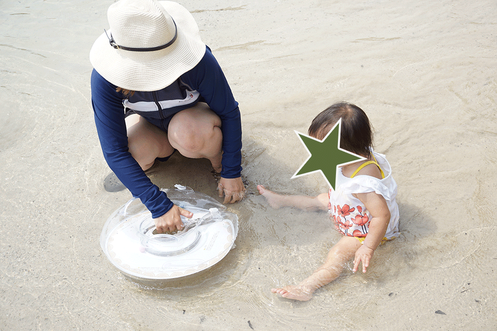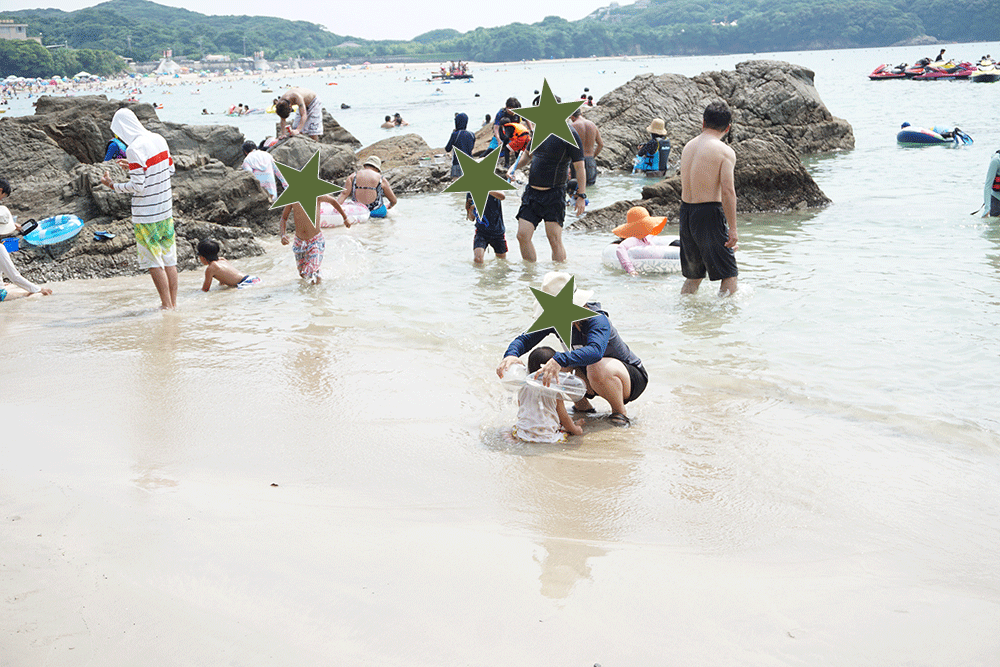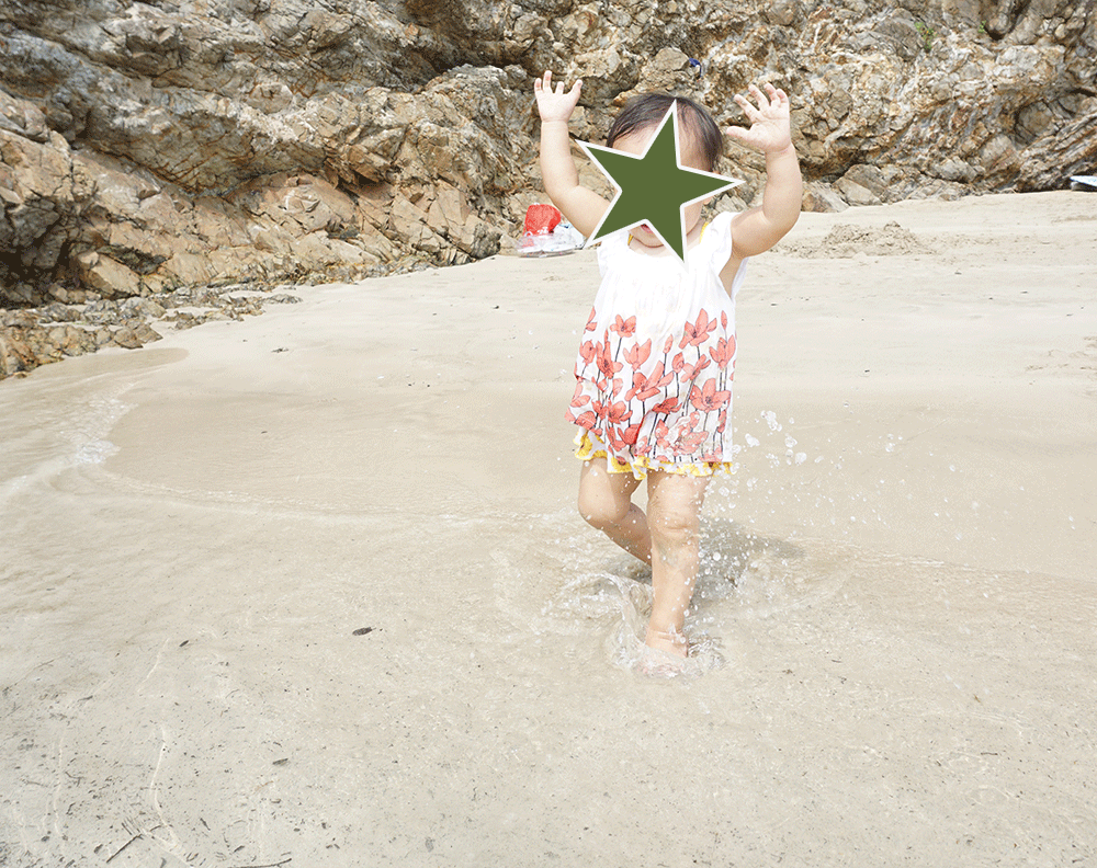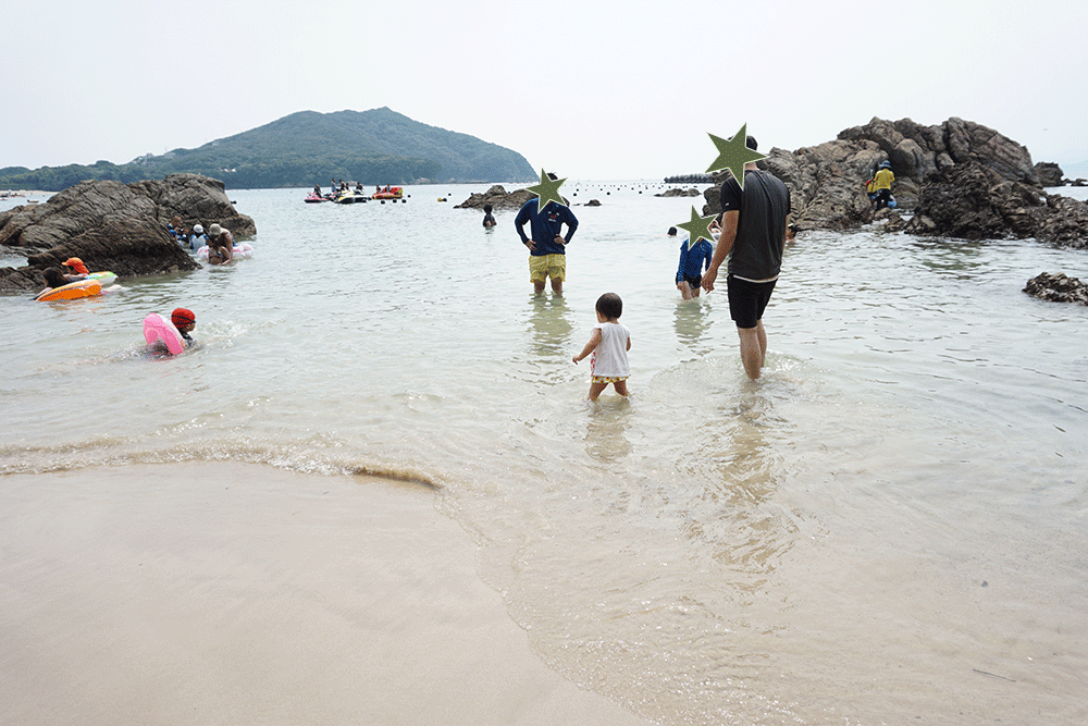 ここの砂浜は急に深くなるようなところが少なく、浅瀬が続いているのでわりと安心してみて入られます。が、それでも海は海、何が起こるかわからないので目は離すことはできません。