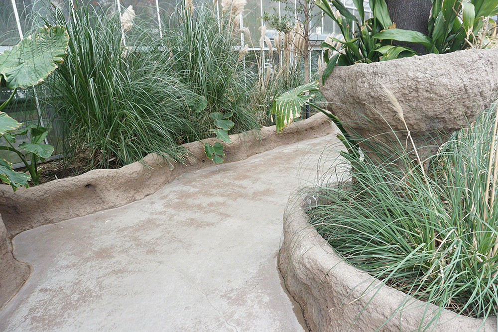 出口をでると、触れ合いや休憩のできるお花エリアに出るので、そこからアフリカの湿地に戻ります。