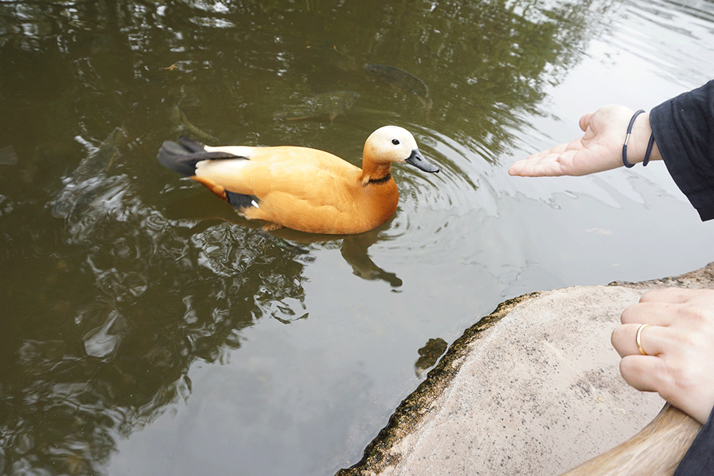 野生では逃げちゃうカモさんも至近距離で触れ合えます。