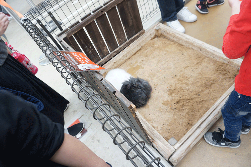 ここでは小動物に触れ合ったりできるゲージが用意されていますが、ゴールデンウィークの大混雑で触れ合うこともなく素通りしました。