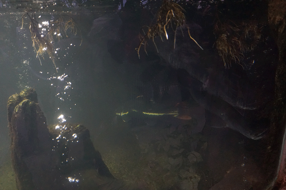 ここに入る前に大きな水槽があるので覗いてみると、カバがいます。