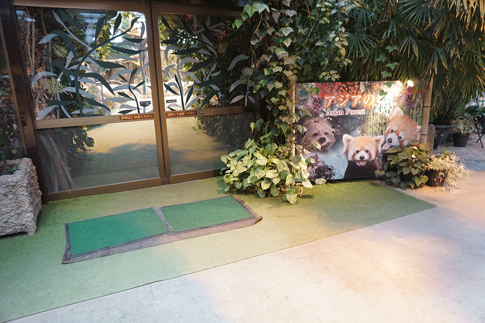 お土産屋さんから左側に進むとアジアの森という自動ドア入り口があります。