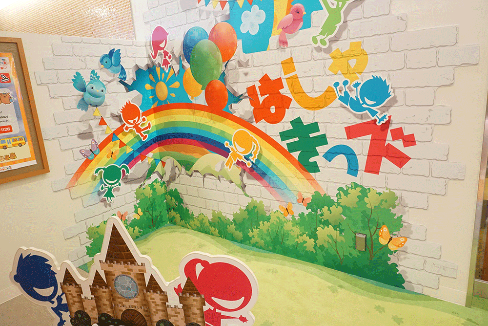 その奥には幼児でも楽しく遊べるお絵描きスペースや、はいはいコーナーもあります。