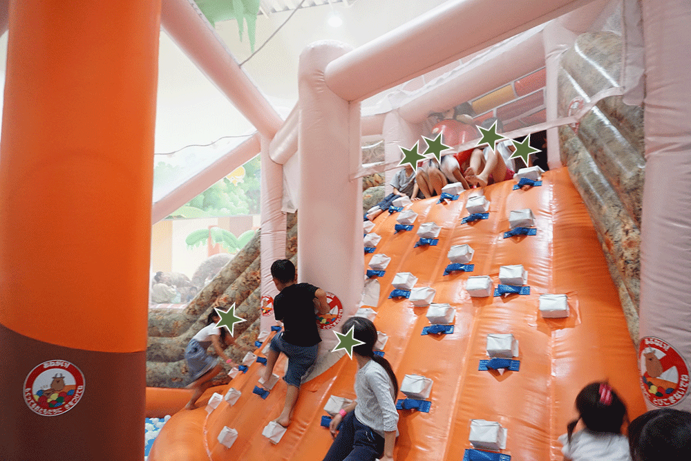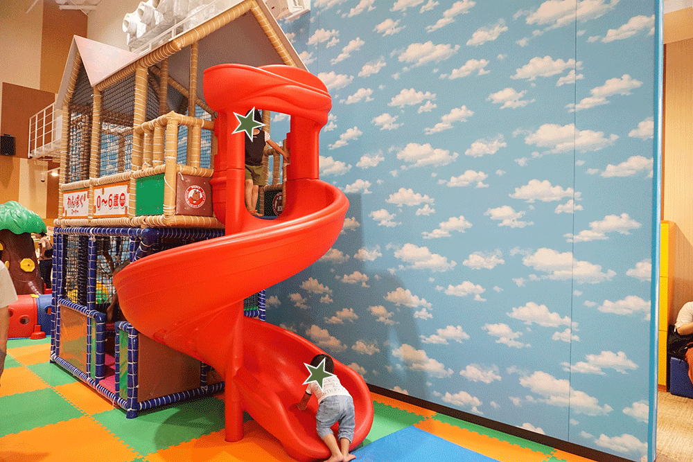 中はアスレチックのように登って行けるようになっていて、屋上ならすべり下りる長いすべり台や、短めのすべり台、ボールプールなどもありどの年代の子どもでも無条件で楽しめます。