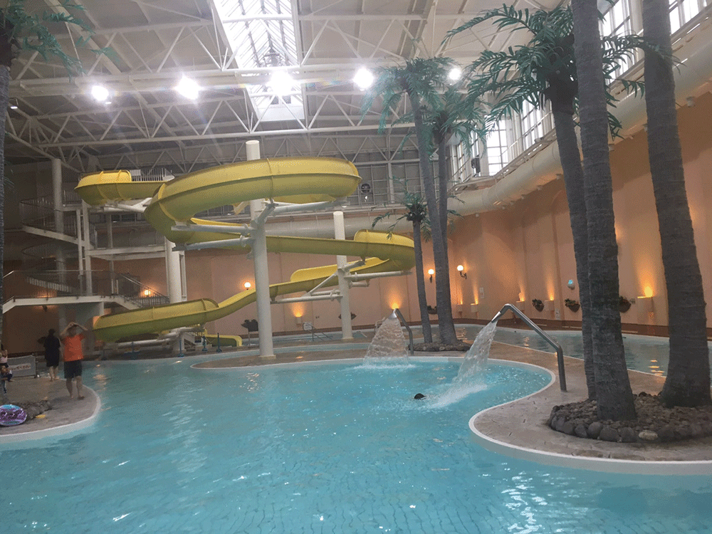 入り口から階段を降りて目の前には大プールがあります。これは大人でちょうど良い深さなので、子どもだけで入ることはできません。