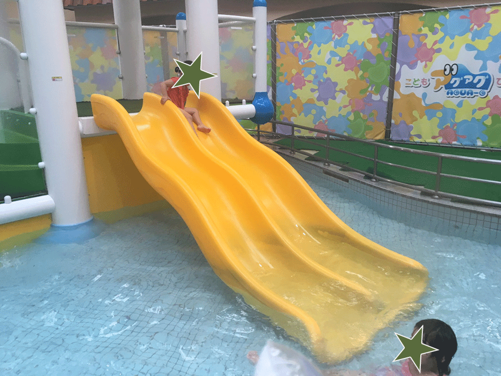 スライダーの出口は流れも強く深さもあるので子どもがすべるときは下で見ていた方がいいかもしれません。