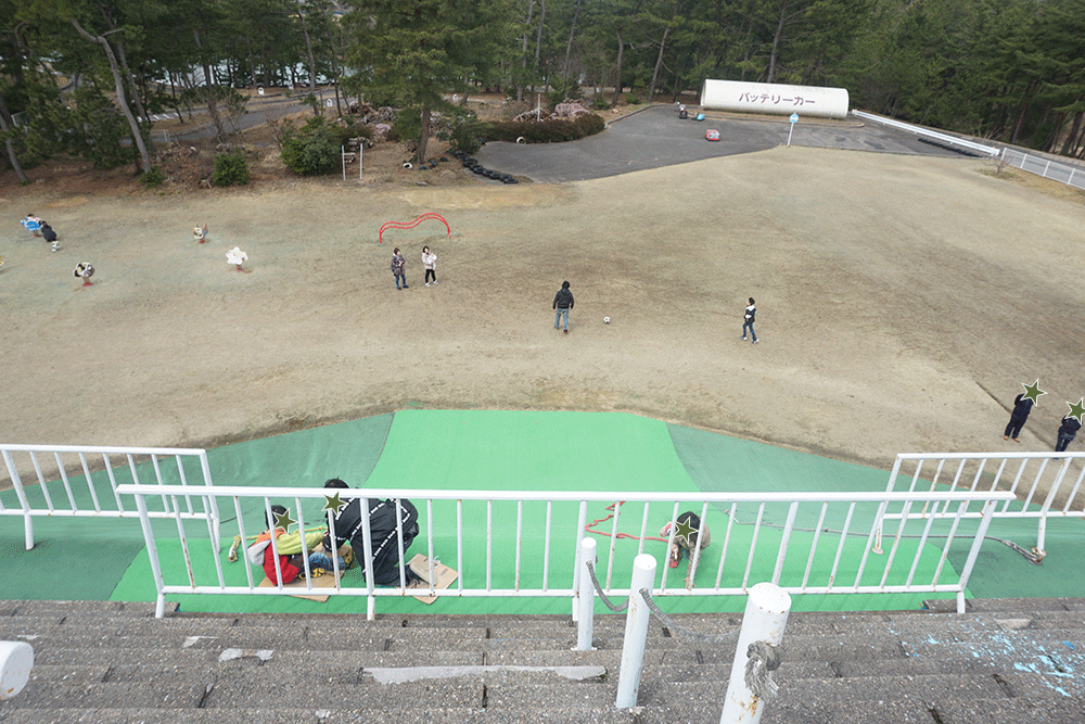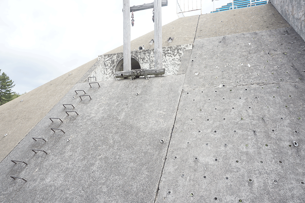 普通に登ってもよし、点数の書かれた穴にボールを投げたり蹴ったりして特典を競って遊んでもよし。