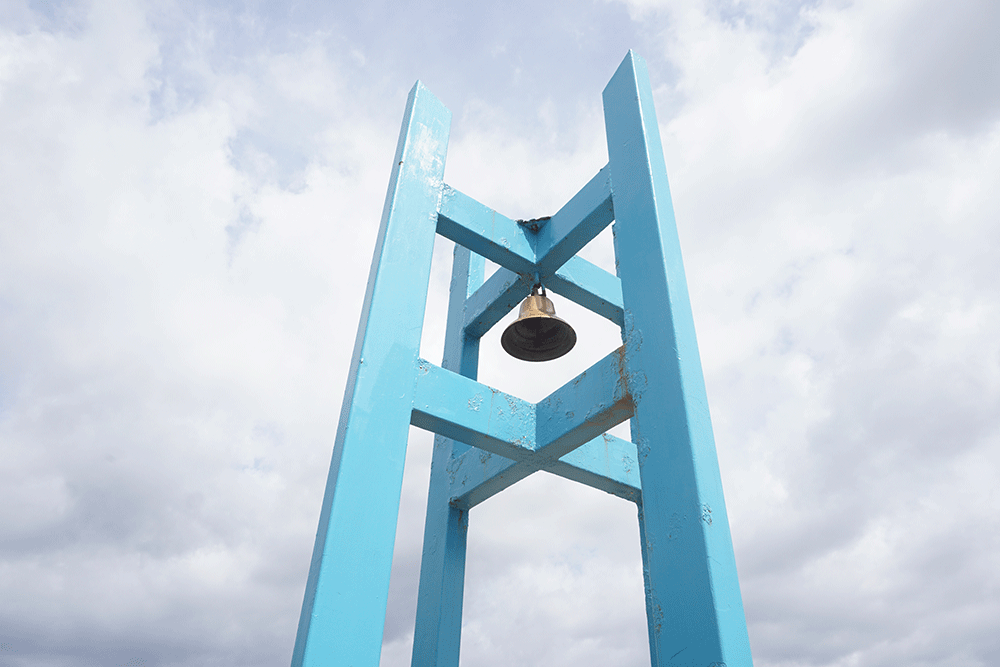 頂上には鐘が設置されています。
