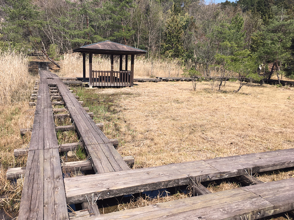 下は池の端っこで、湿地帯のような感じになっていて冒険気分で楽しむ事ができます。