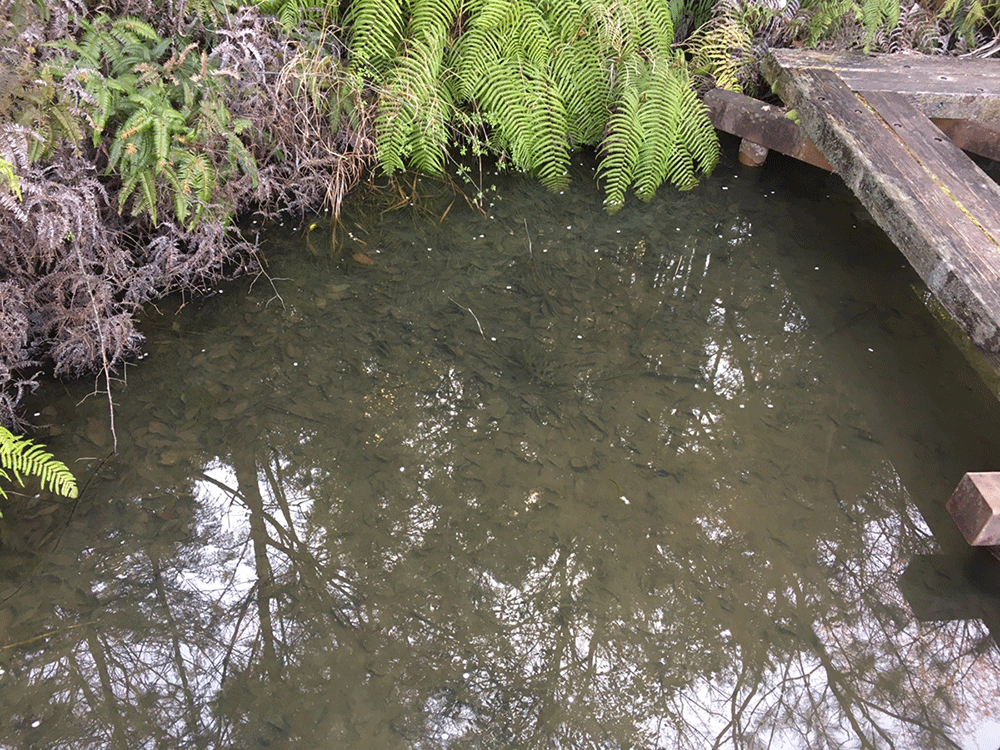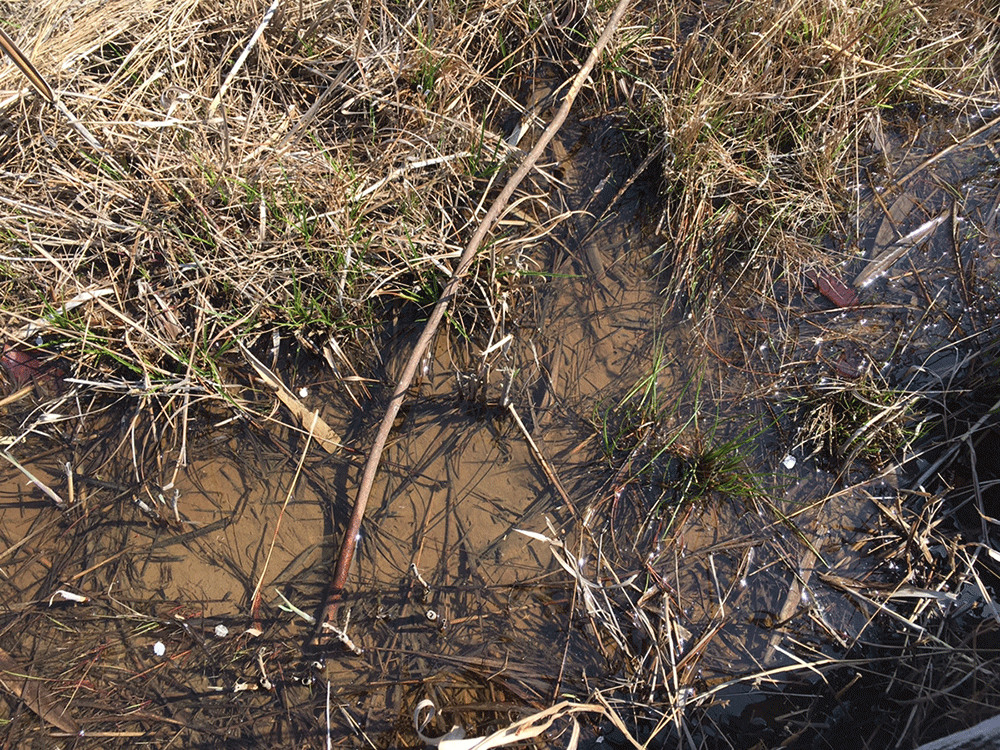 写真では全くわかりませんが、メダカの大群やエビやオタマジャクシなど、たくさんの生き物がうごめいています。
